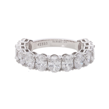 สายคาดครึ่งสีขาวทอง14K หรูหราพร้อมเพชร CVD ที่ปลูกในการตั้งค่ารูปไข่ที่มีง่ามร่วมกันเพื่อความสดใสเหนือกาลเวลา