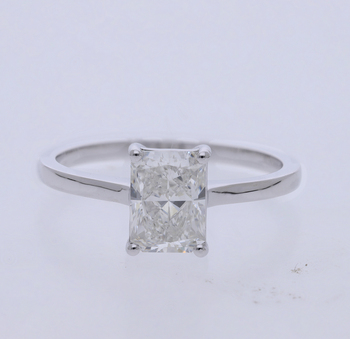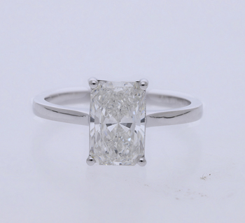 4CT CVD แหวนหมั้นเพชรที่เจียระไนจากมรกตที่โตขึ้นในแล็บแหวนเพชรที่มีด้านข้างเป็นรูปสี่เหลี่ยมคางหมู3ชิ้นแหวนเพชรที่ปลูกในห้องปฏิบัติการตัดมรกต
