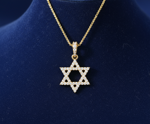 จี้ดาวเดวิด14K เป็นสัญลักษณ์แห่งศรัทธาความแข็งแกร่งและมรดกเหนือกาลเวลาประดับด้วยเพชรธรรมชาติทรงกลมที่สวยงาม