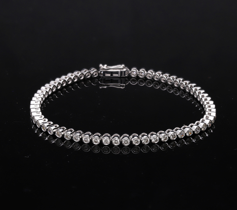 สร้อยข้อมือเทนนิสชุบโรเดียมสีเหลืองทอง14K ที่สง่างามสำหรับผู้หญิงที่มีขอบแบบคลาสสิกตัดเพชรธรรมชาติที่ยอดเยี่ยม