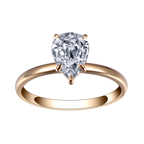 แหวนแต่งงาน18K สีเหลือง fvs VVS เพชรสังเคราะห์ CVD เคลือบโรเดียมชุบทองสำหรับปลูกลูกแพร์1CT