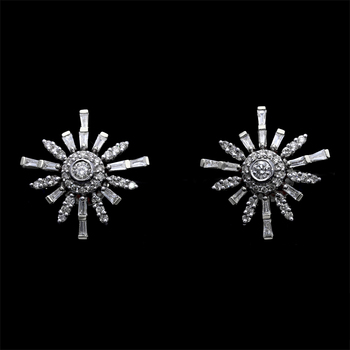 14K altın rodyum kaplama Starburst küpe 0.33CTW doğal elmas baget çerçeve Prong ayarı radyant patlama tasarım kadın